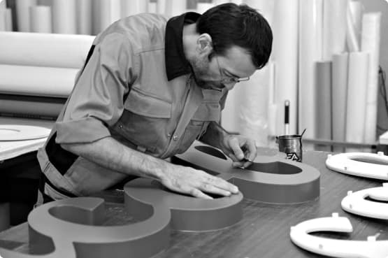 Рекламные объекты изготавливаются в чистых помещениях и на откалиброванном оборудовании, при строгом соблюдении технологии производства.